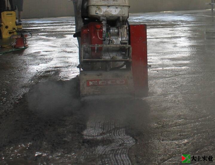 因此,我們首要任務(wù)是如何將混凝土是的油污弄干凈。我們嘗試了各種方法,如使用化學(xué)品清潔劑,但最有效的是打磨。通過(guò)在整個(gè)地板上運(yùn)行打磨兩次,我們能夠消除95%的油污問(wèn)題,我們打磨掉了幾毫米的混凝土,其余5%的油污問(wèn)題我們?cè)偻ㄟ^(guò)清潔劑清洗。