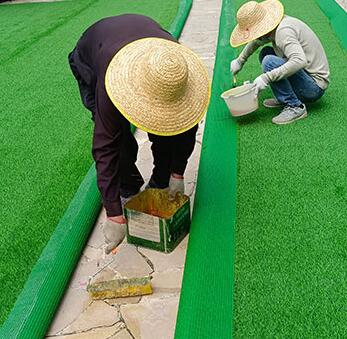 2-3分鐘后膠水揮發(fā),再把兩邊草坪慢慢放下,調(diào)整按壓兩邊草坪觸膠部位保證平整相接。