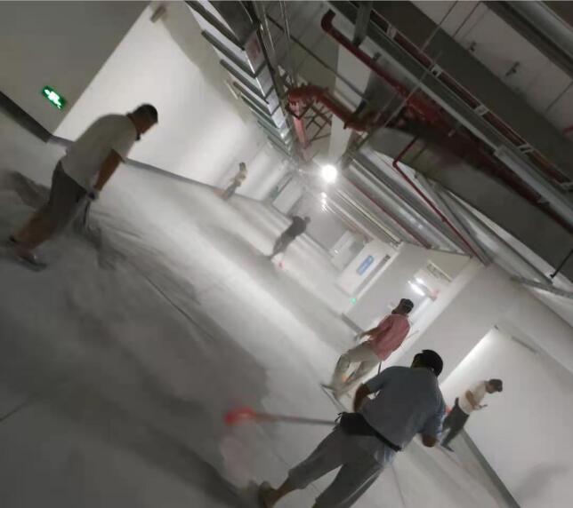 底漆刷完間隔6-8小時批刮中涂(主漆:固化劑=4:1),可適量添加石英砂或滑石粉進行批刮,待12小時后可適當(dāng)打磨,使地面平整(一遍到兩遍)。