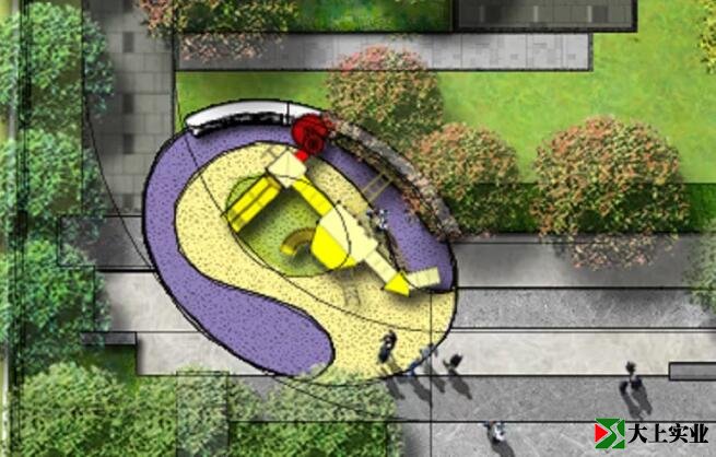 4.滑梯口、秋千四周等常磨損位置增設(shè)小塊顏色便于后期更換及維保效果。