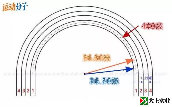 02 彎道半徑弧度是36.5米,直道的長(zhǎng)度則是84.39米。(π × 36.5米+84.39米)× 2=498.116米就是標(biāo)準(zhǔn)體育場(chǎng)內(nèi)圈(第一道)內(nèi)圈線的距離,比400的“標(biāo)準(zhǔn)”短了差不多兩米。目前世界上大型場(chǎng)館的田徑跑道都是以這個(gè)標(biāo)準(zhǔn)修整的。