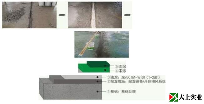 開啟抽風(fēng)系統(tǒng)/除濕設(shè)備至空氣濕度達(dá)到施工面漆的要求,完成除濕工作(空氣濕度需<80%,地面含水率需<6%)