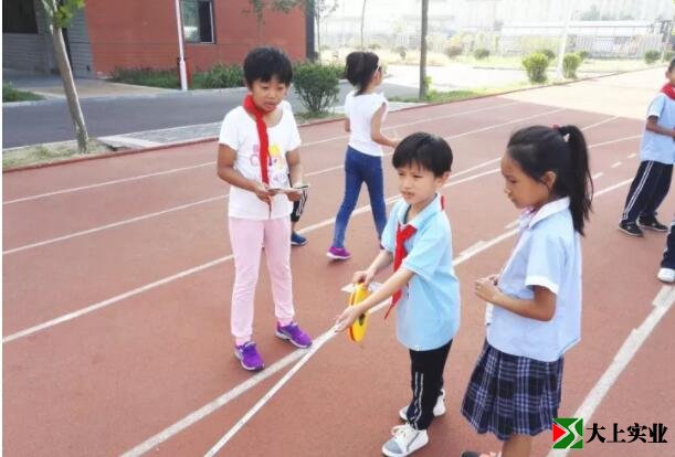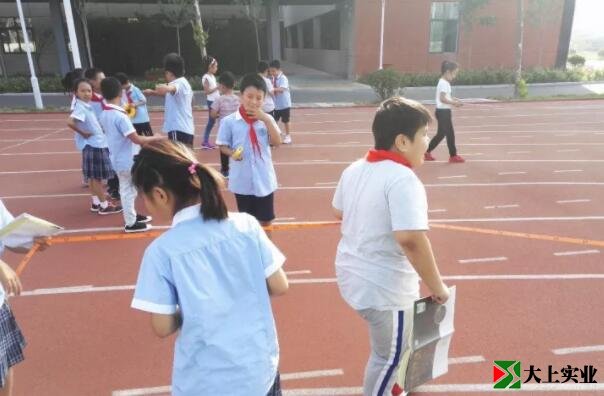 孩子們來到操場上,迅速按照前一天晚上各學(xué)習小組制定好的測量方案分小組開始對操場進行測量。