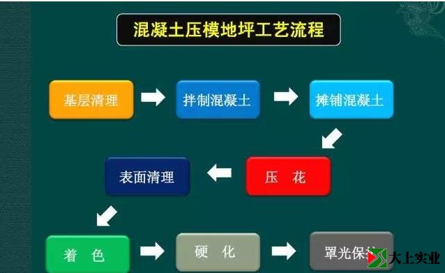 東西再好,施工成本過高也會(huì)讓人退卻的,那么壓花地坪麻煩嗎?具備流程如下圖所示↓