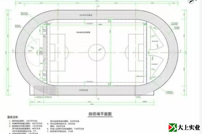 200米跑道:彎道半徑16.7米,直道段長46.8米,共4道,分道寬最小為1.22米,最大為1.25米,分道線寬5厘米,所有分道寬應相同。