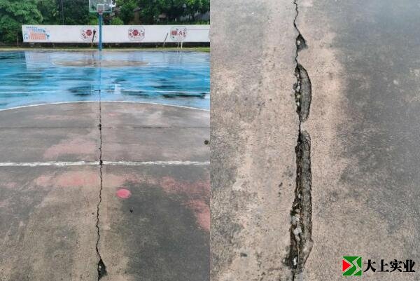 由于球場(chǎng)地基下沉、年久失修,地面多處開裂且凹凸不平。學(xué)生活動(dòng)時(shí)要小心翼翼,存在著較大的安全隱患。