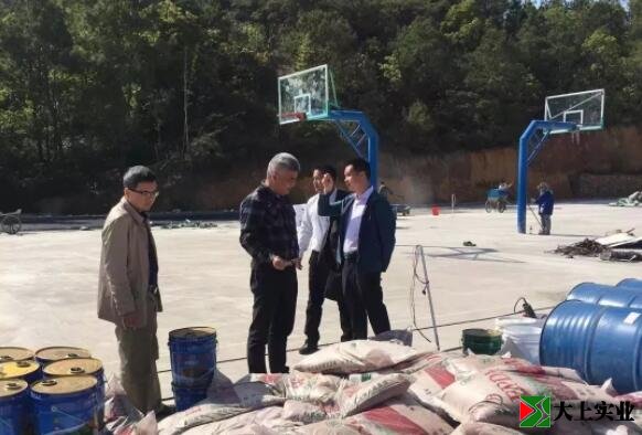 塑膠運(yùn)動(dòng)場建設(shè)情況。敬梓中學(xué)校長鐘培根、副校長彭作榮陪同。