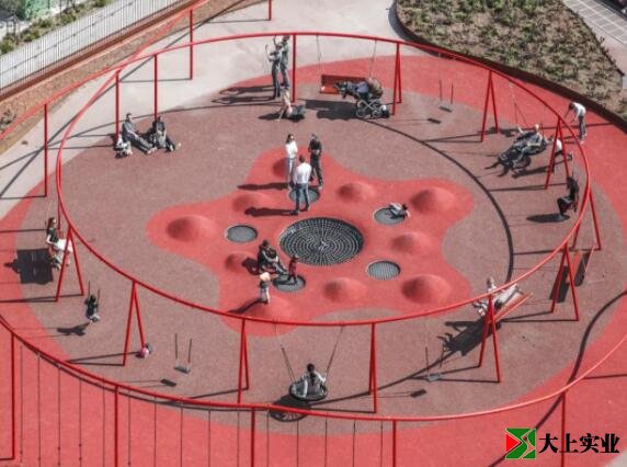 大齡兒童區(qū)設(shè)置了秋千、索道、賽道、跑道、投籃區(qū)、沙池等游樂設(shè)施,同樣也設(shè)置了大人看護座椅,在這個區(qū)域設(shè)置的是易于進入這些區(qū)域的清晰通道,以應(yīng)對大齡兒童快速和無預(yù)兆的情緒轉(zhuǎn)換。