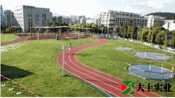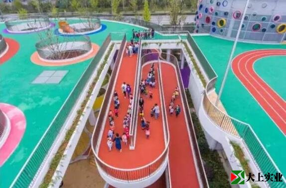 紅色部分是跑道,綠色、橙色屬于慢行道,可以有效地減少相互干擾。整條跑道和以往見過的任何一條操場跑道都不一樣