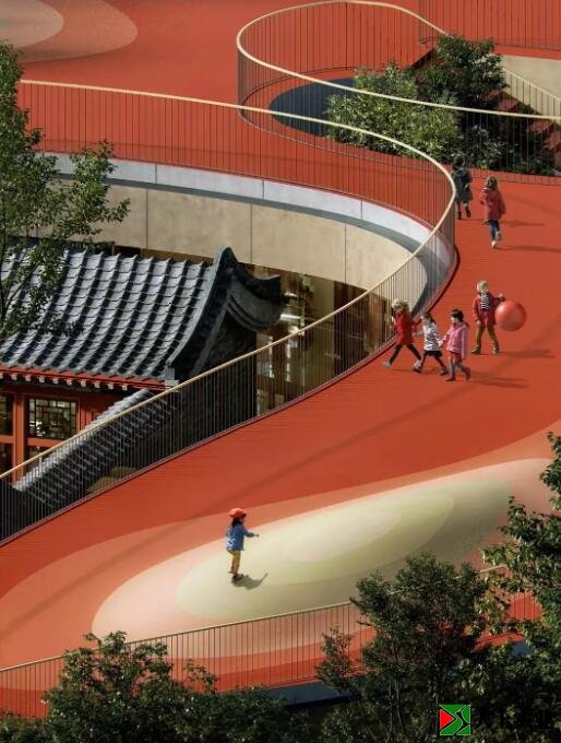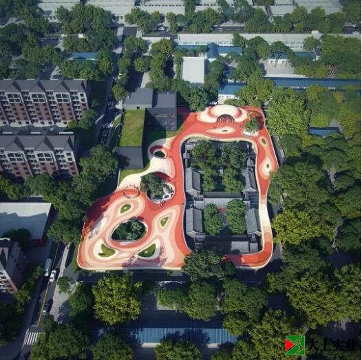 北京的四合院幼兒園由MAD設(shè)計,馬巖松說:“老北京有句形容孩子淘氣的俗話,‘三天不打,上房揭瓦’。屋頂對孩子來說是充滿魔力的。在四合院空間中,屋頂就像是一片新的大地,是無拘無束、自由的象征。”