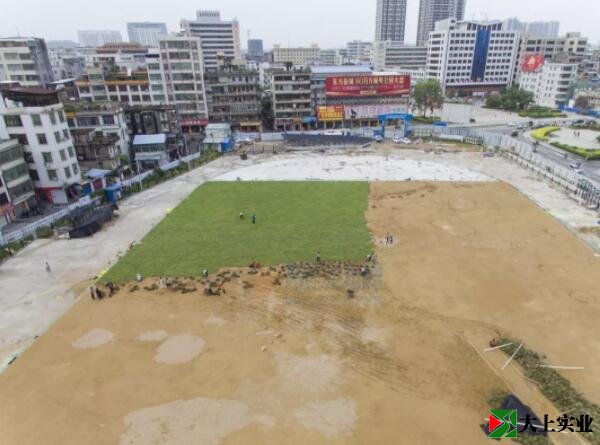 天然草坪施工階段,預(yù)計(jì)一個(gè)星期內(nèi)可以施工完畢。