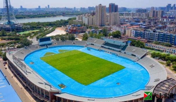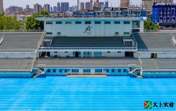 不同尋常的是,大家看到的塑膠跑道大多為紅色,改造后的西工體育場(chǎng)400米塑膠跑道選擇了天藍(lán)色,令人眼前一亮。