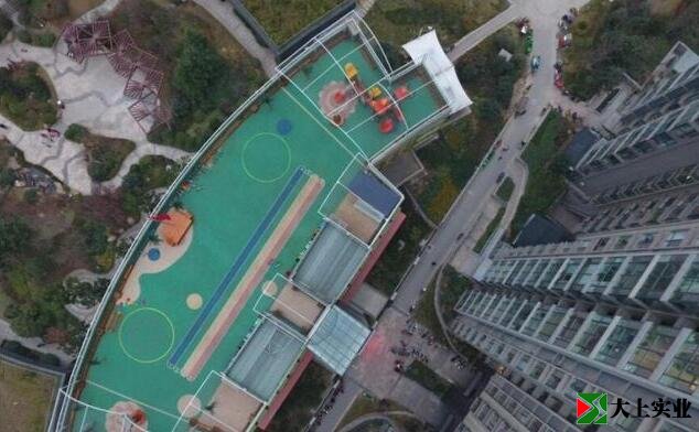 在河南省鄭州市桐柏路社區(qū)的高層建筑中有一個幼兒園,屋頂上有一個微型“空中游樂場”。
