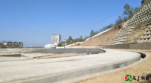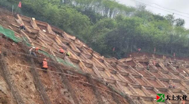 后山被新挖出的陡坡,長達290多米,平均高度近30米。為預(yù)防滑坡,投入大量資金,做龐大的空格梁護坡工程。晝夜施工,歷時四月。