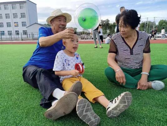 塑膠跑道上,市民們或悠閑散步,或揮汗練跑;綠茵場上,市民們有的在盡興地踢足球,有的則是一家人席地而坐,拍照打卡,歡聲笑語,其樂融融。