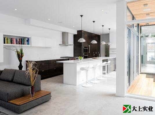 在起居室和就餐區(qū)使用明亮的環(huán)氧地坪漆