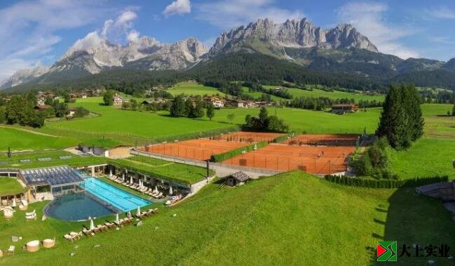 奧地利生態(tài)酒店的網(wǎng)球場,坐落在迷人的奧地利阿爾卑斯山腳下,除了6個(gè)室內(nèi)網(wǎng)球場外,還有8個(gè)室外紅土網(wǎng)球場。
