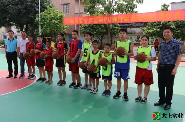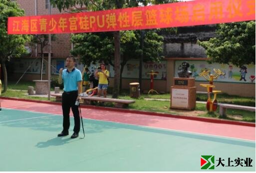 梁漢強(qiáng)主任宣布:“江海區(qū)青少年宮硅pu彈性層籃球場(chǎng)正式啟用”!