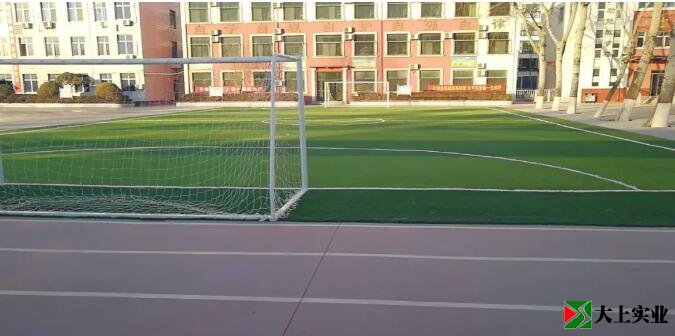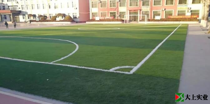 大上實業(yè)對足球場進行了改建,足球場由原來的水泥面改建成現(xiàn)在的人工草坪球場。該球場規(guī)格為:40.05米*23米,填充白色石英砂和環(huán)保橡膠顆粒。