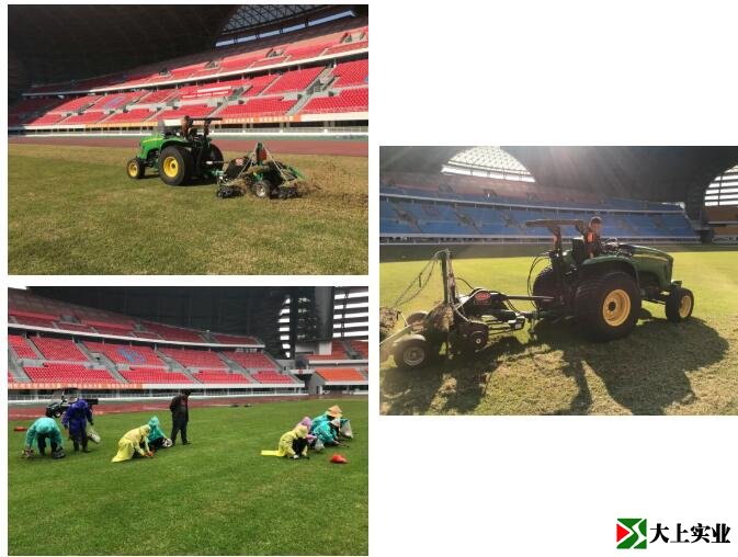 在三月下旬時對比賽草坪進行了疏草、打孔、覆沙、人工找平工作,來擴大土壤的表面積,增加土壤和大氣的接觸面積,促進氣體交換,增加土壤的通氣性、吸水性、透水性,同時改善草坪的土壤結(jié)構(gòu),控制枯草層,防止草坪草徒長。